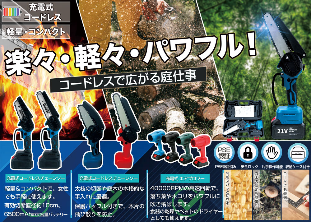 高圧洗浄機、家庭用電動ノコギリ、ブロワー、温冷スティック、氷パック、湯たんぽ、暑さ対策バンド、集音器、炊飯補助具、アロマ加湿器、シリコン化粧ブラシ、垢すりタオル、紙製折りたたみトイレなど