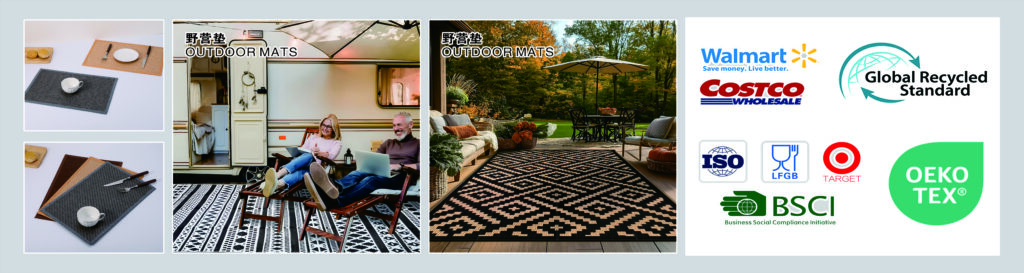PVC PLACEMAT、PP OUTDOOR MAT、LEATHER PLACEMAT、 TABLE RUNNER、PVC HOLLOW PLACEMAT、ROUND PLACEMAT